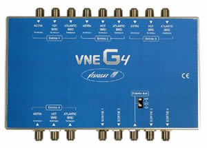 Matrice, commutateur mini-collectif 3 x SAT (ex: Hot-Bird, Atlantic Bird 3, Astra 1) + TNT (+ even. radio FM) pour 4 utilisateurs :
