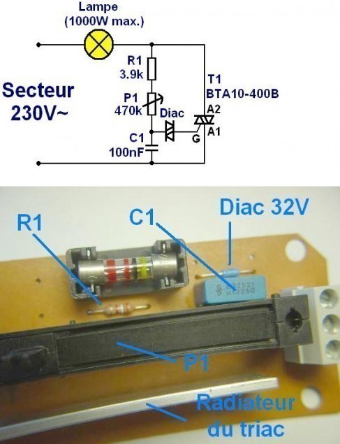 Un variateur de lumière est une réalisation simple mais il faut rester prudent à la présence du secteur, même si il y a un fusible.